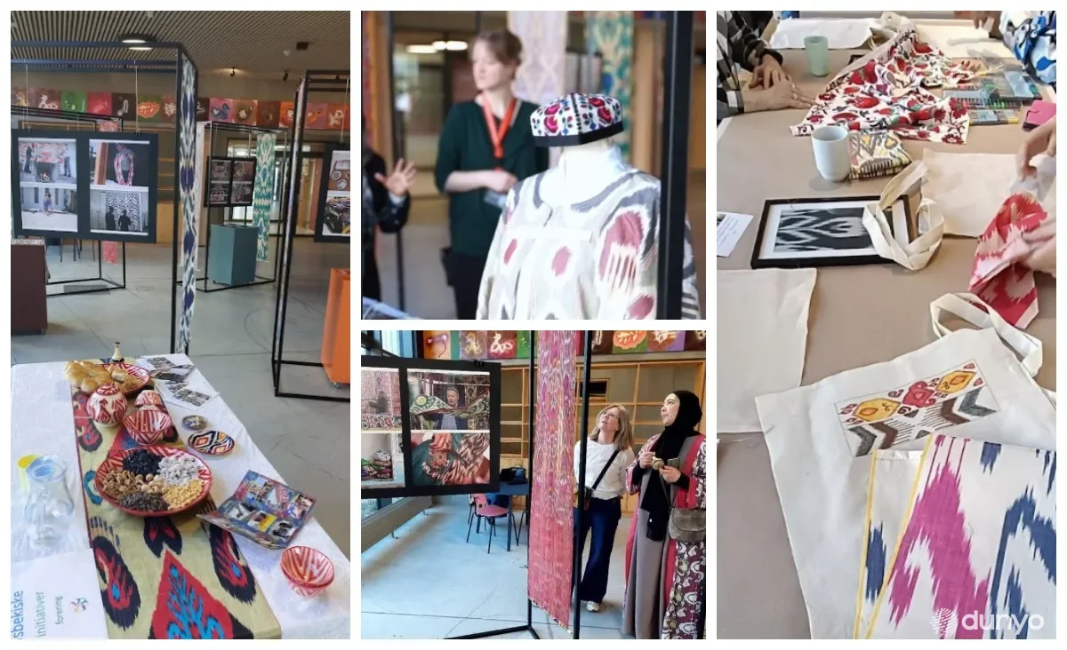 The exhibition, which runs from April 3 to 30, is organized by the Association of Uzbek Initiatives, an organization of Uzbek nationals in Denmark. The exhibition features photographs, textiles, and visual aids that showcase the traditional Uzbek weaving craft, focusing on the art of abrbandi – the process of transforming silk cocoons and cotton threads into finished fabrics.