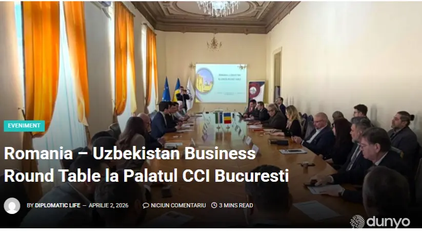 BUCHAREST, April 5. /Dunyo IA/. Popular Romanian electronic portals “Bucuresti Business” and “Diplomatic Life” published articles titled “Romania – Uzbekistan: Business Roundtable”, dedicated to the results of the recent Uzbek-Romanian business forum in Bucharest, reports Dunyo IA correspondent.