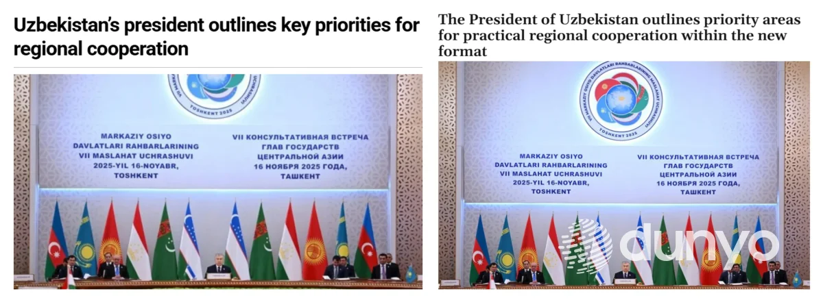 ISLOMOBOD, 20-noyabr. /"Dunyo" AA/. Pokistonning yetakchi ommaviy axborot vositalari shu yilning 15-16-noyabr kunlari Toshkentda bo'lib o'tgan Markaziy Osiyo davlatlari rahbarlarining yettinchi Maslahat uchrashuvini keng yoritdi, deb xabar bermoqda "Dunyo" AA muxbiri.
