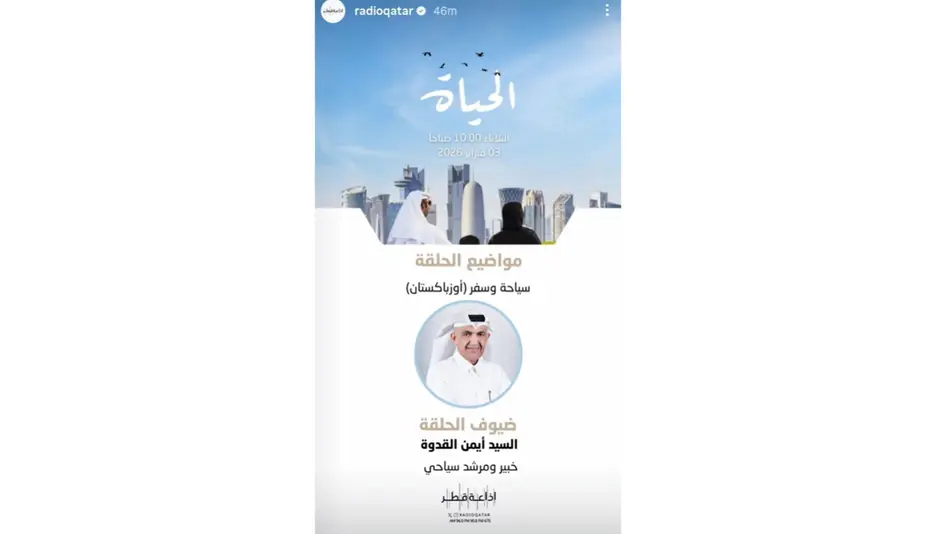 DOHA, 13-fevral. /“Dunyo” AA/. Qatarlik turizm sohasi bo‘yicha ekspert Ayman Al-Qudva Qatar radiosiga O‘zbekistonning sayyohlik salohiyati haqida intervyu berdi, deb xabar qilmoqda “Dunyo” AA muxbiri.