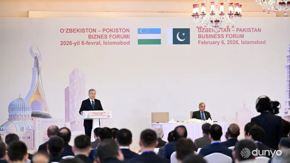 TOSHKENT, 6-fevral. /“Dunyo” AA/. O‘zbekiston Prezidenti Shavkat Mirziyoyev bugun Islomobod shahriga davlat tashrifining ishbilarmonlik dasturi doirasida Pokiston Bosh vaziri Shahboz Sharif bilan birgalikda qo‘shma biznes forumida ishtirok etdi, deb xabar bermoqda “Dunyo” AA muxbiri.
