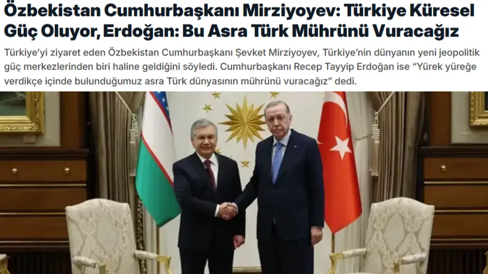 Turkiya OAV: O‘zbekiston va Turkiya yagona intilish va strategik maqsadlar yo‘lida hamjihat