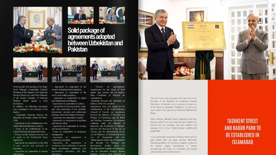 “News Letter Uzbekistan” jurnalining joriy yildagi birinchi maxsus soni 36 betdan iborat bo‘lib, u O‘zbekistonning xalqaro imijini mustahkamlash va Pokiston bilan ikki tomonlama hamkorlikni yana-da kengaytirishga xizmat qiladi.