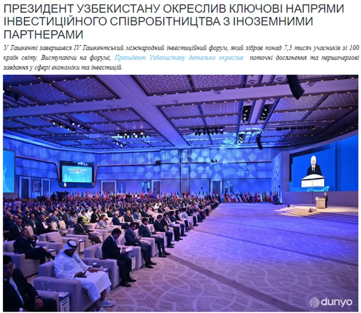КИЕВ, 21 июня. /ИА «Дунё»/. В украинском журнале «Kyiv Diplomatic» размещена статья о прошедшем в столице Узбекистана IV Ташкентском международном инвестиционном форуме, сообщает корреспондент ИА «Дунё».
