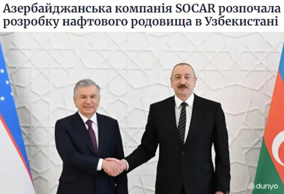 «У нас традиционное энергетическое сотрудничество с Туркменистаном. Мы уже вышли на эту сферу с Узбекистаном. Наша государственная нефтяная компания SOCAR уже начала разработку нефтяного месторождения в Узбекистане, и контракт уже подписан», - сказал глава государства.