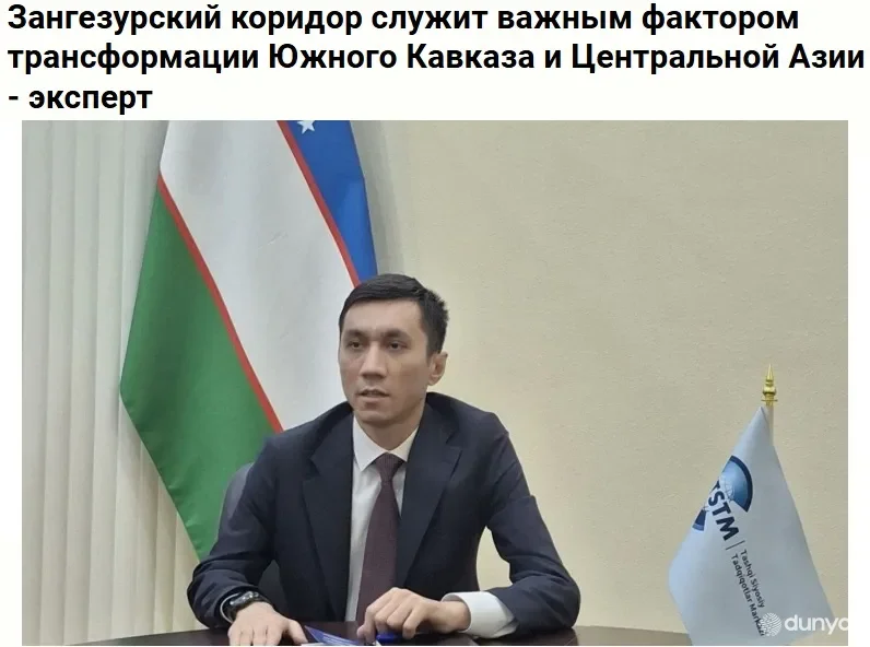 В интервью также был сделан акцент на проекте Зангезурского коридора, который приобретает все большее значение в контексте укрепления межрегиональных связей. Как было отмечено, с одной стороны, он направлен на усиление стратегического сотрудничества тюркских стран, с другой – служит важным фактором трансформации двух ключевых регионов: Южного Кавказа и Центральной Азии. Этот коридор не только создаёт новые транспортные маршруты, но и формирует новую логику пространственной взаимосвязанности, становясь важным инструментом сопряжения интересов, инфраструктур и транспортных систем. Он способствует созданию более устойчивой и эффективной сети, которая будет поддерживать устойчивое развитие на всей евразийской территории, обеспечивая экономическую и политическую интеграцию между регионами.