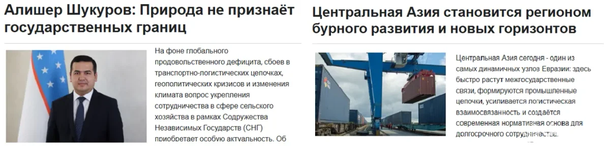 В частности, в статье под заголовком «Природа не признаёт государственных границ» отмечается, что в последние годы нарушения поставок в разных регионах мира создали серьёзные риски для продовольственной безопасности. В таких условиях тесное взаимодействие стран СНГ в аграрной сфере через взаимные поставки продукции, обмен технологиями и координацию действий может стать ключом к обеспечению продовольственной независимости региона.