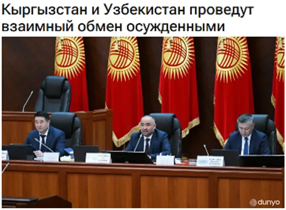АСТАНА, 31 января. /ИА «Дунё»/. Кыргызстан и Узбекистан проведут взаимный обмен осужденными в рамках договора о передаче осужденных, подписаного в июле 2024 года в Ташкенте, сообщает корреспондент ИА «Дунё».
