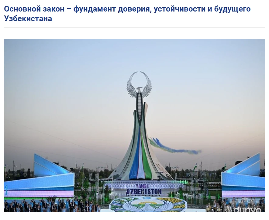 МОСКВА, 8 декабря. /ИА «Дунё»/. На интернет-портале СНГ опубликована статья под названием «Основной закон – фундамент доверия, устойчивости и будущего Узбекистана», сообщает корреспондент ИА «Дунё».
