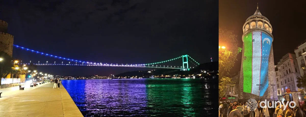 СТАМБУЛ, 22 ноября. /ИА «Дунё»/. Два важнейших исторических и стратегических объекта Стамбула - башня Галата и мост Фатих Султан Мехмет, соединяющий Европу и Азию, были подсвечены цветами Государственного флага Узбекистана, сообщает корреспондент ИА «Дунё».