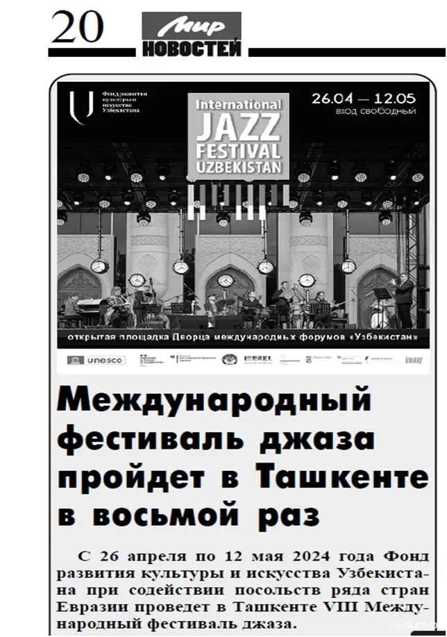«Мир новостей» анонсировал проведение Международного фестиваля джаза в Ташкенте