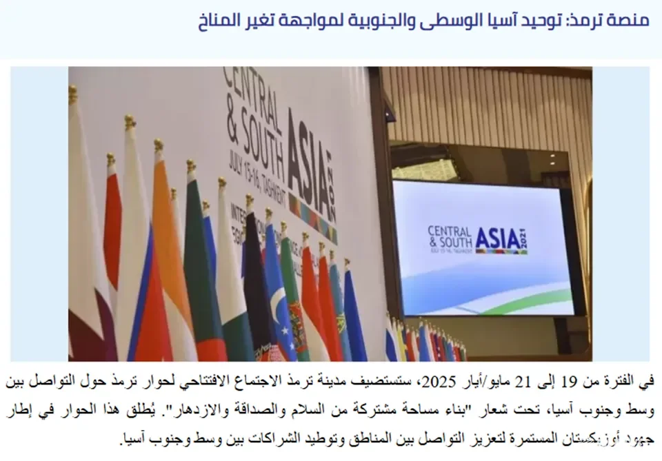 Так, саудовское электронное издание "An Nahar News" опубликовало статью под заголовком "Термезская платформа – площадка для сотрудничества в области противодействия общим климатическим вызовам в Центральной и Южной Азии".