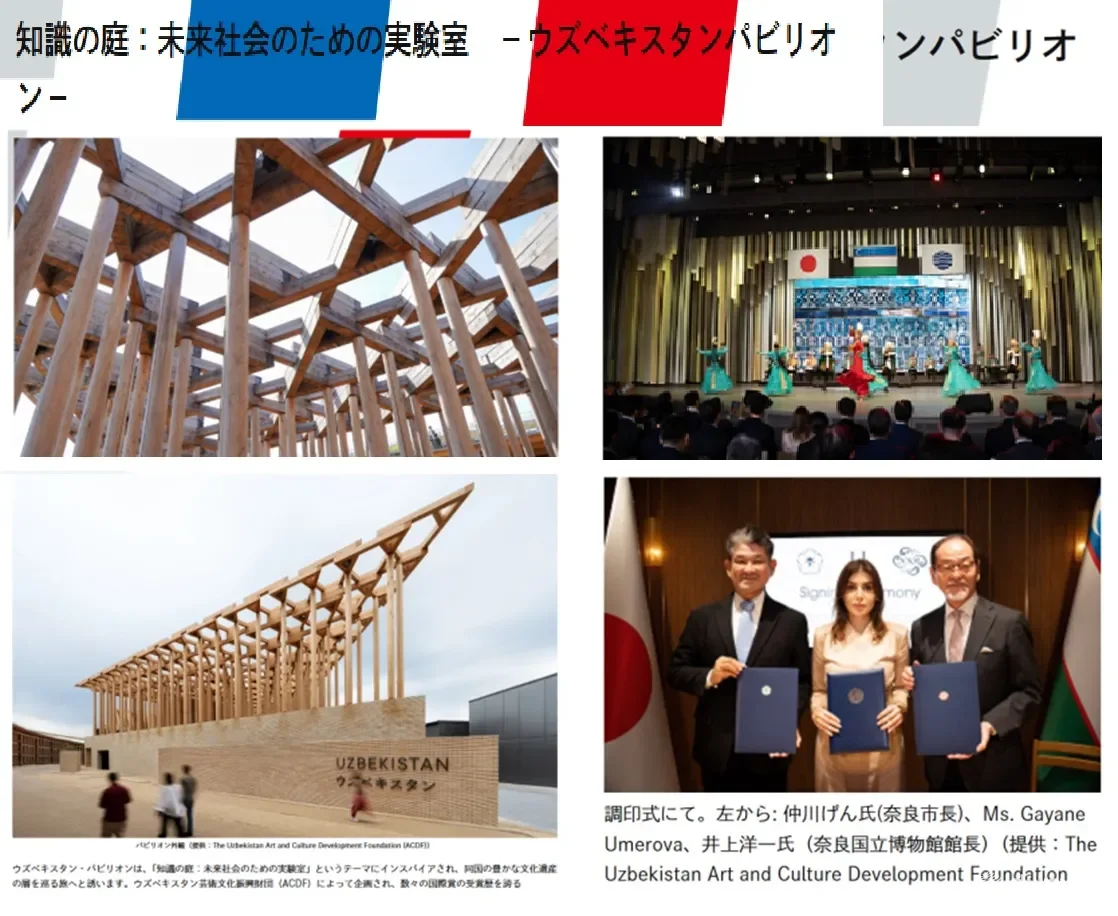 Подчеркивается, что в завершение мероприятия в павильоне Узбекистана был подписан трёхсторонний меморандум о сотрудничестве между Фондом развития культуры и искусств, городом Нара и Национальным музеем Нары. Документ предусматривает организацию в 2027 году масштабной выставки, посвящённой Великому Шёлковому пути, и расширение сотрудничества в области культурного наследия.