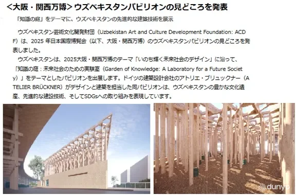 ТОКИО, 24 февраля. /ИА «Дунё»/. В японском электронном информационном издании «PRTimes» опубликована статья, посвящённая национальному павильону Узбекистана на предстоящей Всемирной выставке «Expo Osaka 2025», сообщает корреспондент ИА «Дунё».