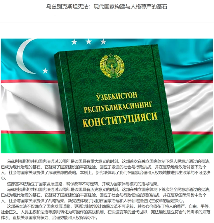 ПЕКИН, 4 декабря. /ИА «Дунё»/. На страницах издания «Psearcher» опубликована статья под заголовком «Конституция Узбекистана: основа современной государственности и человеческого достоинства», сообщает корреспондент ИА «Дунё».