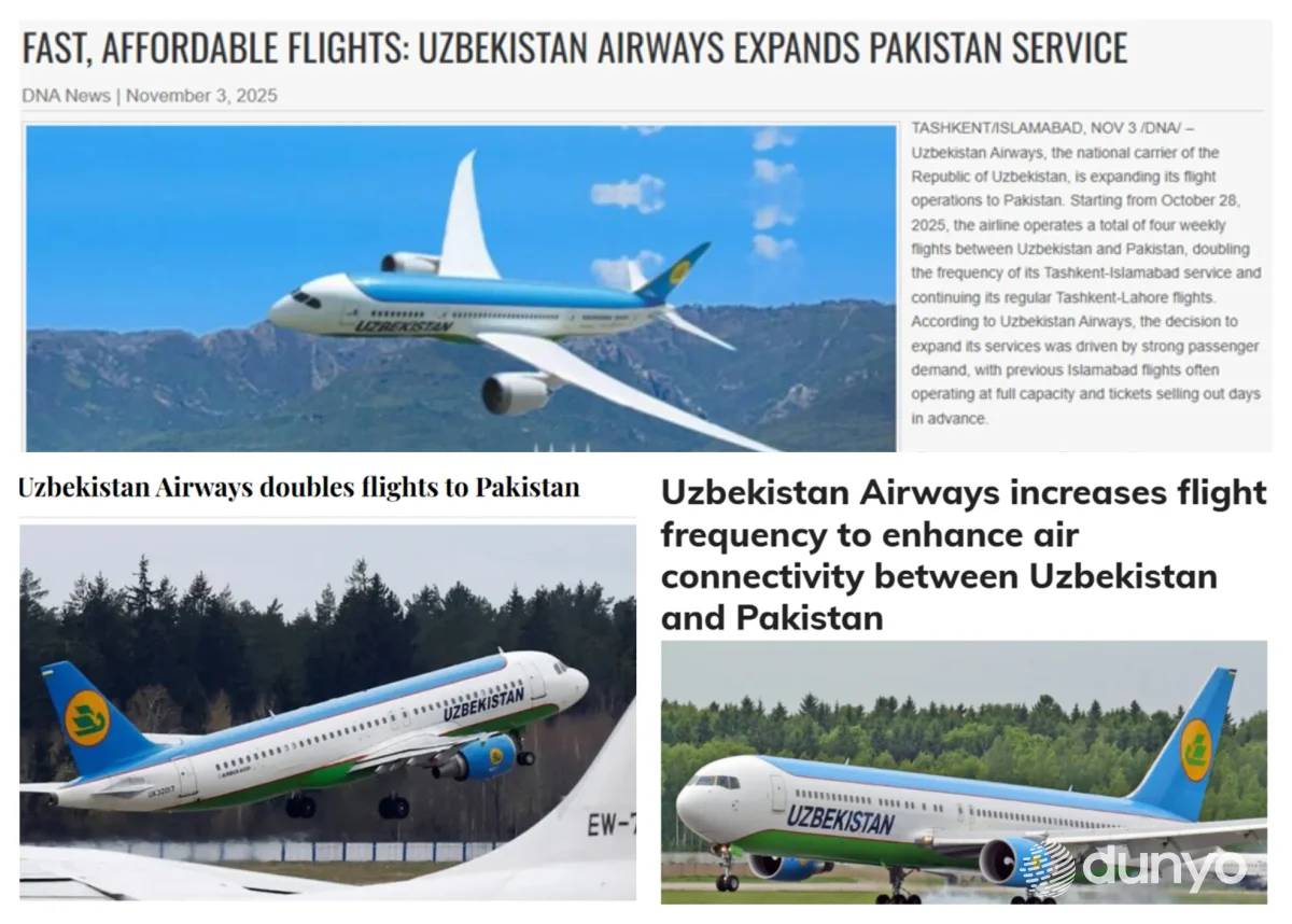 В них отмечается, что национальная авиакомпания «Uzbekistan Airways» начала выполнять четыре рейса в неделю между Узбекистаном и Пакистаном с 28 октября этого года.