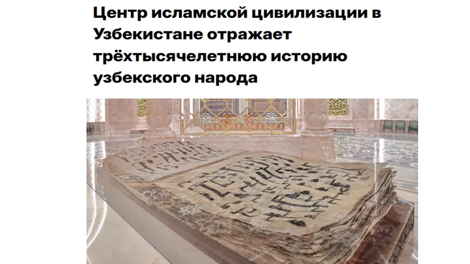 СМИ Турции: Центр исламской цивилизации в Узбекистане отражает трёхтысячелетнюю историю узбекского народа