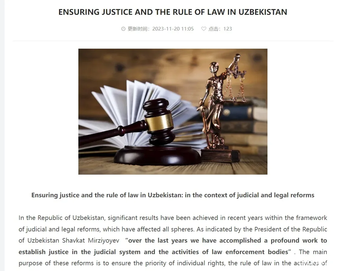 ПЕКИН, 5 декабря. /ИА "Дунё"/. На страницах китайского информационно-аналитического журнала «Lookwe» опубликована статья под заголовком «Обеспечение справедливости и верховенства закона в Узбекистане: в контексте судебно-правовых реформ», сообщает корреспондент ИА «Дунё».