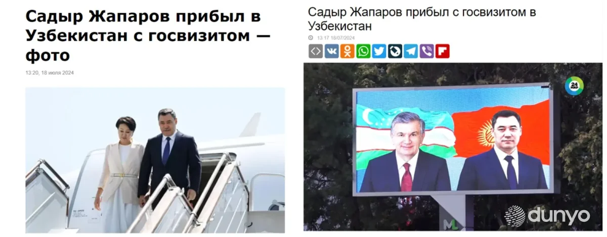Межгосударственный телеканал «МИР 24» передал, что Президент Кыргызстана прибыл с государственным визитом в Узбекистан, где в международном аэропорту Ташкента его встретил Президент Шавкат Мирзиёев.