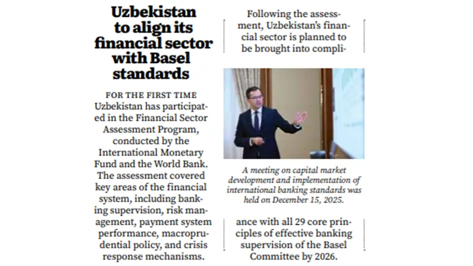 Узбекистан впервые принял участие в Программе оценки финансового сектора (Financial Sector Assessment Program - FSAP), инициированной Международным валютным фондом и Всемирным банком. Данный аудит охватил критически важные направления финансовой архитектуры страны, такие как эффективность банковского надзора и управления рисками, функционирование платежных систем, механизмы кризисного реагирования и макропруденциальную политику, пишет автор статьи.