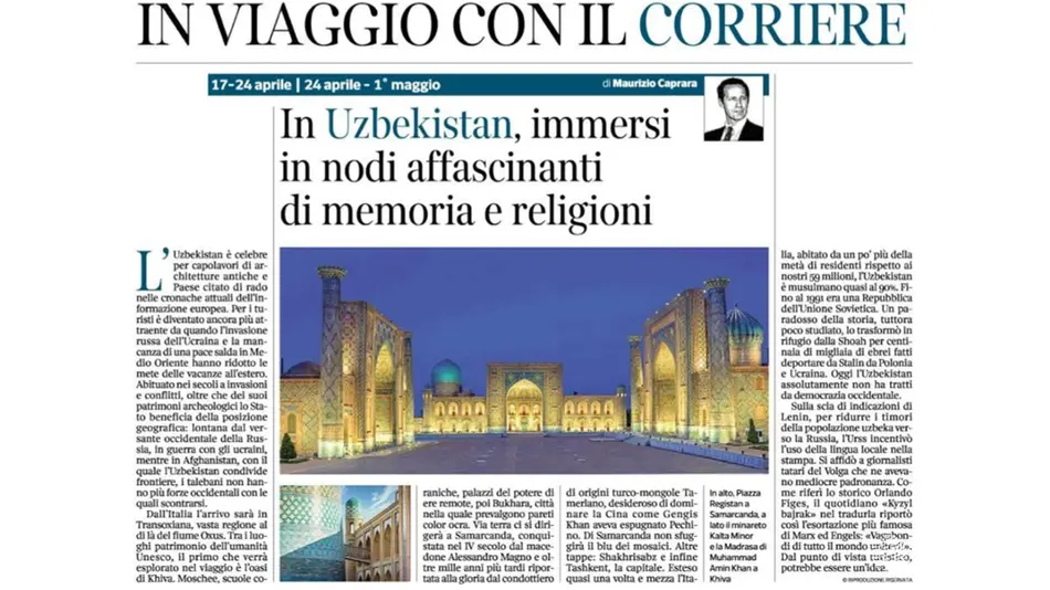 Автор статьи - журналист издания Маурицио Капрара представляет Узбекистан как страну с уникальным историческим наследием, богатой культурой и особым геополитическим положением, делающим ее все более привлекательной для европейских туристов.