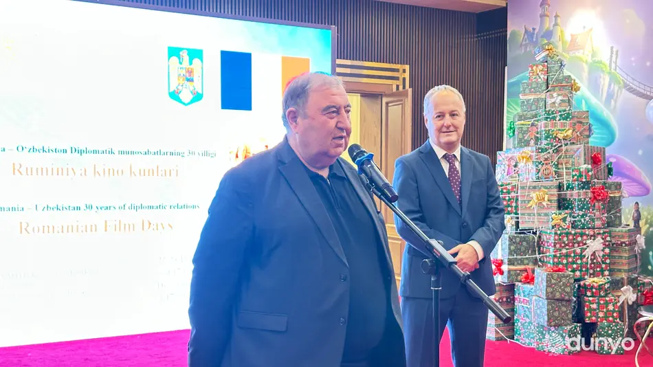 В завершение церемонии Шухрат Ризаев вручил послу Румынии памятный подарок в честь 100-летия узбекского кинематографа, который будет отмечаться 28 декабря 2025 года.
