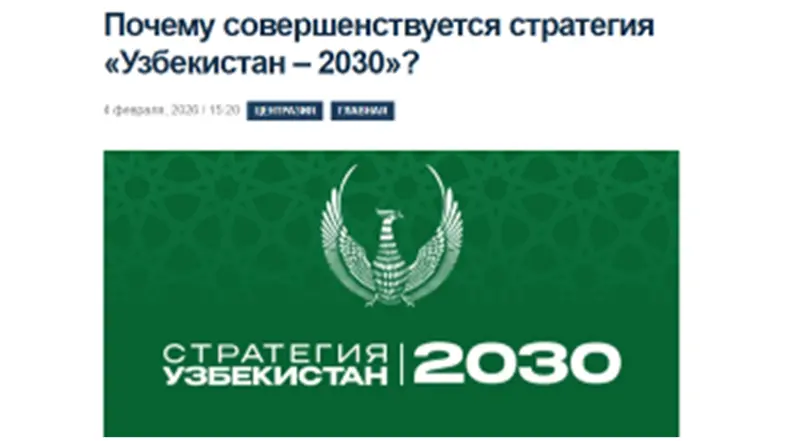 ДУШАНБЕ, 5 февраля. /ИА «Дунё»/. В таджикском информационном агентстве «Avesta» опубликована статья под заголовком «Почему совершенствуется стратегия «Узбекистан – 2030»?», в которой рассматриваются причины и ключевые подходы к обновлению стратегического программного документа развития Узбекистана, сообщает корреспондент ИА «Дунё».