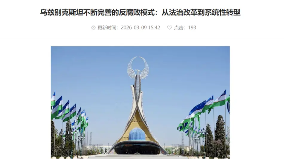 ПЕКИН, 11 марта. /ИА «Дунё»/. На страницах китайского издания “Lookwe” опубликована статья под заголовком “Эволюция антикоррупционной модели Узбекистана: от правовой реформы к системной трансформации”, сообщает корреспондент ИА «Дунё».
