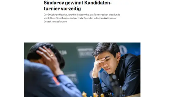 Немецкие СМИ отмечают успех узбекского шахматиста в турнире претендентов