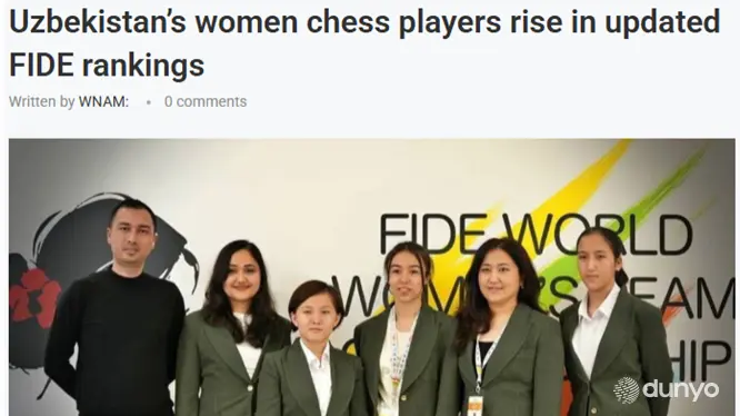 Издание также представило вниманию своих читателей статью под заголовком «Узбекские шахматистки поднялись в обновлённом рейтинге FIDE». В ней сообщается, что Международная шахматная федерация (FIDE) опубликовала обновлённый рейтинг за январь 2026 года. Примечательно, что в женском рейтинге сборная Узбекистана впервые в своей истории сумела войти в топ-15.