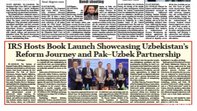 • 27ИСЛАМАБАД, 23 декабря. /ИА «Дунё»/. Пакистанские СМИ широко освещают презентацию англоязычного издания книги политолога Кудратиллы Рафикова «Новый Узбекистан: путь Шавката Мирзиёева», которая была организована Посольством Узбекистана в сотрудничестве с Институтом региональных исследований (Institute of Regional Studies, IRS), сообщает корреспондент ИА «Дунё».