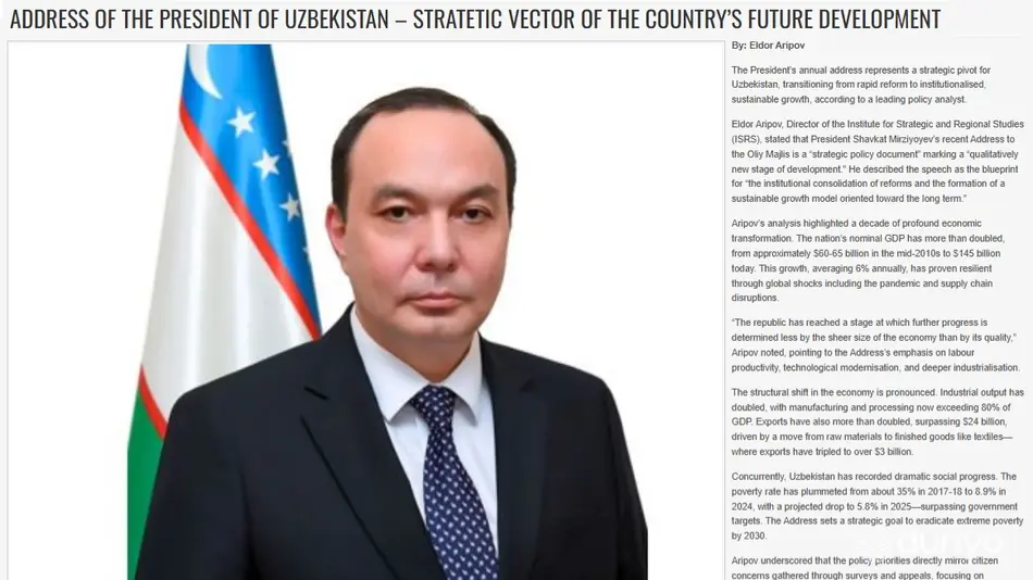 В частности, такие информационные агентства и издания, как «DNA News», «Pakistan Today», «The World News», «Margalla Tribune», «Media Online Today», «Daily Sub News», «The Gulf Observer», «The Europe Today», «News Network Pakistan», а также газета «Islamabad Post», опубликовали статью директора Института стратегических и межрегиональных исследований при Президенте Узбекистана (ИСМИ) Эльдора Арипова.