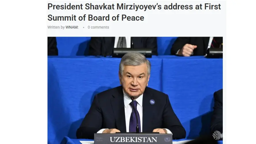 В своём выступлении Президент Шавкат Мирзиёев подчеркнул, что Узбекистан поддержал миротворческую инициативу о создании Совета мира и твёрдо заявил о намерении принять практическое участие в её успешной реализации.