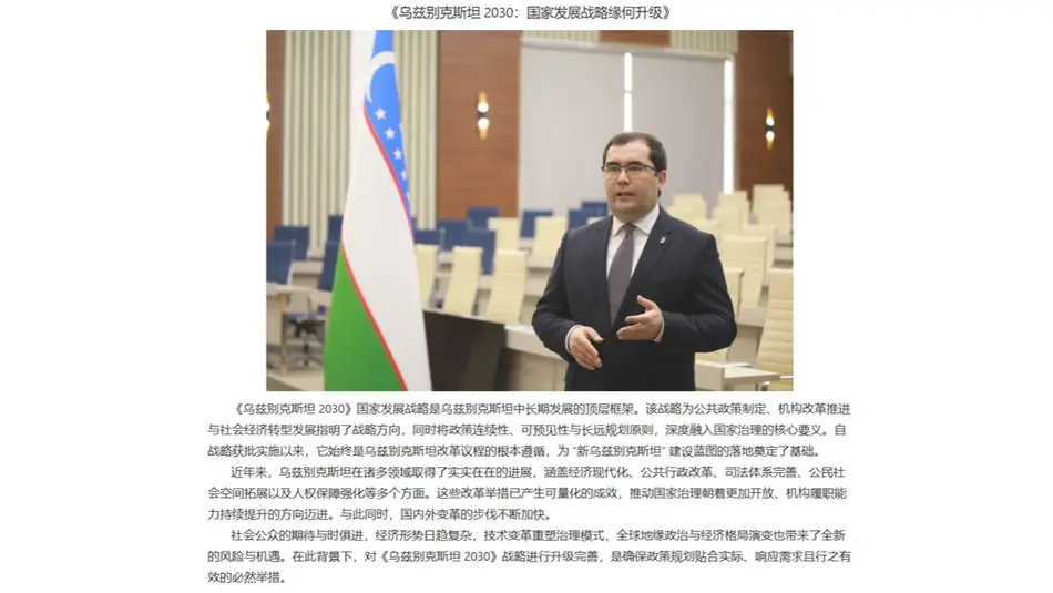 "В этой связи возникает объективная необходимость совершенствования стратегии «Узбекистан – 2030» с учётом реальных условий, актуальных потребностей населения и требований времени, подчеркивает китайский журнал", - пишет автор.