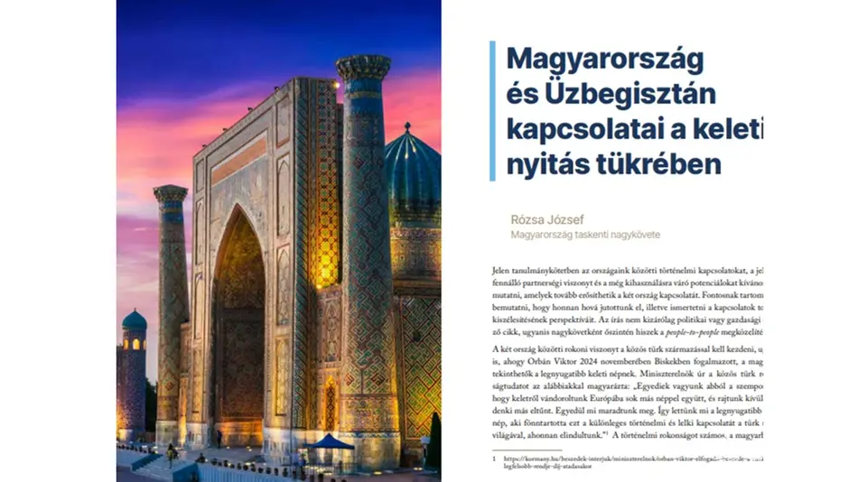 В статье Посла Венгрии Рожи Йожефа «Венгерско-узбекские отношения в контексте политики «Открытия на Восток» двустороннее сотрудничество рассматривается в более широком историческом и внешнеполитическом контексте. Автор подчёркивает тюркское культурно-историческое родство венгерского и узбекского народов, опираясь на высказывания руководства Венгрии, научное наследие Армина Вамбери и устойчивое восприятие Венгрии в Центральной Азии как близкой по духу страны.