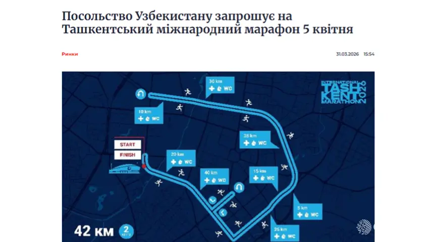 КИЕВ, 2 апреля. /ИА «Дунё»/. Посольство Узбекистана в Украине пригласило всех желающих принять участие в Ташкентском международном марафоне 2026, который состоится 5 апреля, сообщает корреспондент ИА «Дунё» со ссылкой на украинские инфопорталы «Open4business» и «Fixygen».