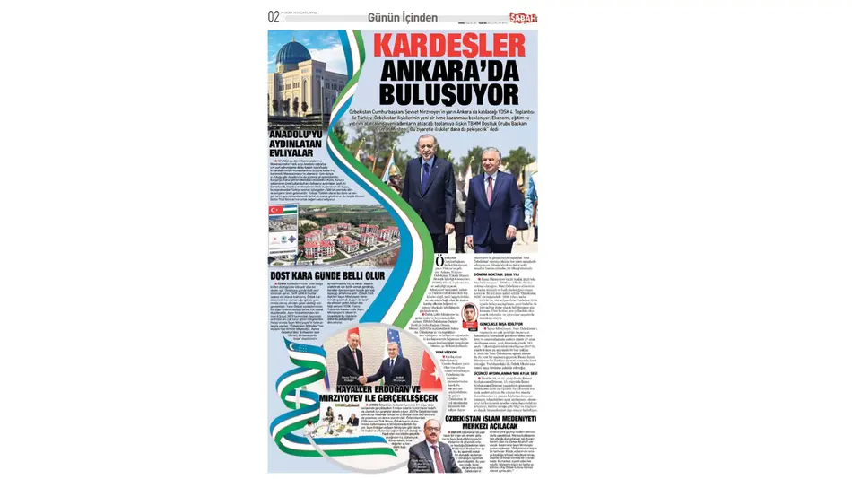 Турецкая газета «Sabah» отмечает укрепление дружбы и сотрудничества между Турцией и Узбекистаном