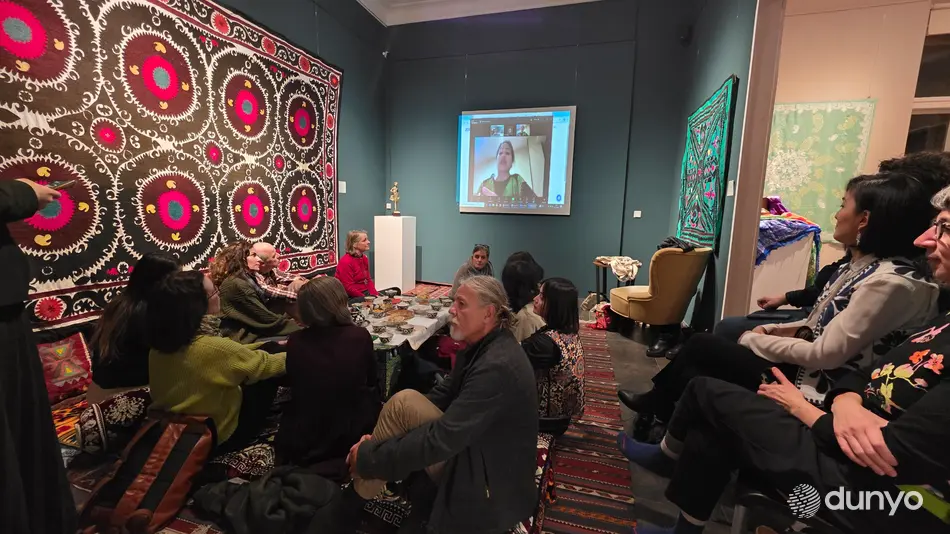 Кроме того, в рамках мероприятия состоялся практический мастер-класс по вышивке сюзане, организованный соотечественницами Зайнаб Расуловой и Нилуфар Саттаровой. Для наглядной демонстрации процесса вышивания вокруг традиционной хонтахты были расстелены курпачи, а гостям представили увлекательный рассказ об узбекских обычаях, культуре гостеприимства и традициях дастархана.