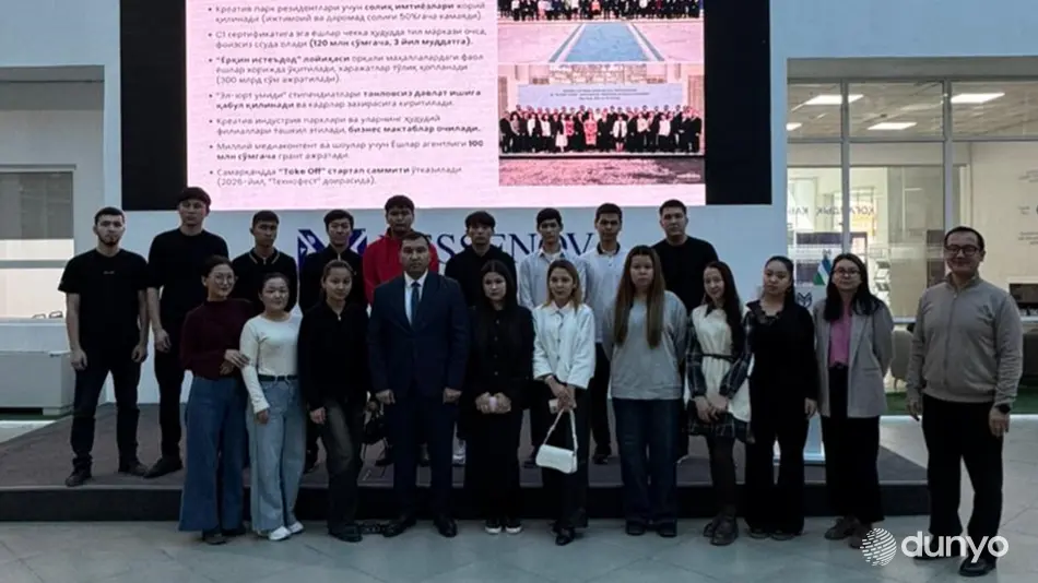 Студентам также была представлена информация о реализуемых в Узбекистане молодежных инициативах - «Ибрат фарзандлари», «Устоз AI», «Қизлар Академияси», «UzChess», «Креатив парк» и другие.