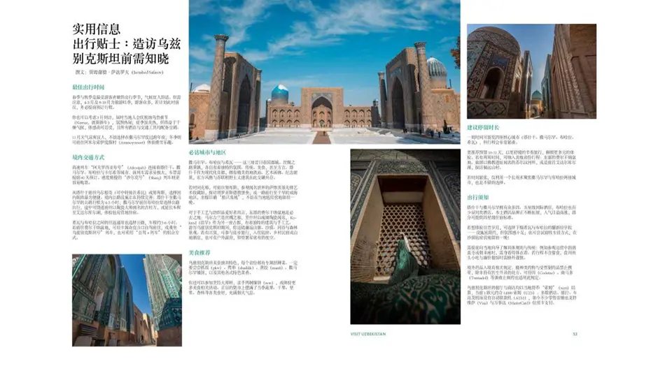 Китайские туристы, желающие посетить нашу страну, смогут получить из журнала важную информацию о важных датах Узбекистана, визовой политике, узбекских словах и фразах, необходимых для общения, интересных местах, национальных блюдах и другой подобной важной информации.