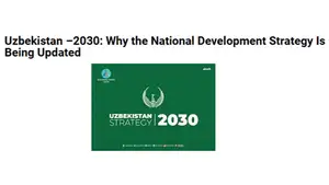 - Стратегия «Узбекистан-2030» является важнейшим программным документом. Он определяет видение будущего и основные направления движения Узбекистана вперёд. Важно отметить, что главным смысловым моментом в стратегии «Узбекистан-2030», является то, что именно государство предназначено для народа, а не народ для государства.