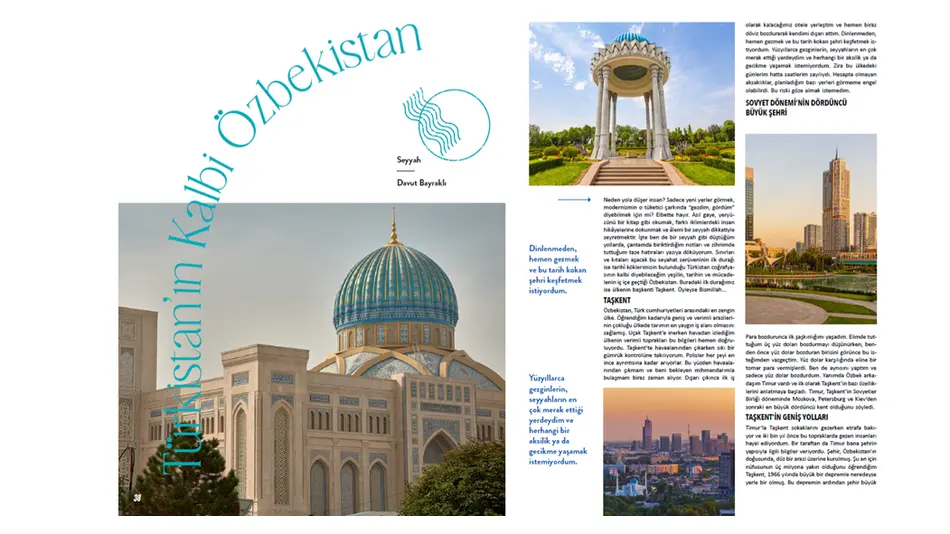 Также в материале говорится о ташкентском метро - первом в Центральной Азии, открытом в 1977 году. Автор восхищается его архитектурой и художественным оформлением станций. Завершая рассказ о столице, он делится ожиданиями поездки в древнюю Бухару - один из старейших городов региона с более чем 2500-летней историей.