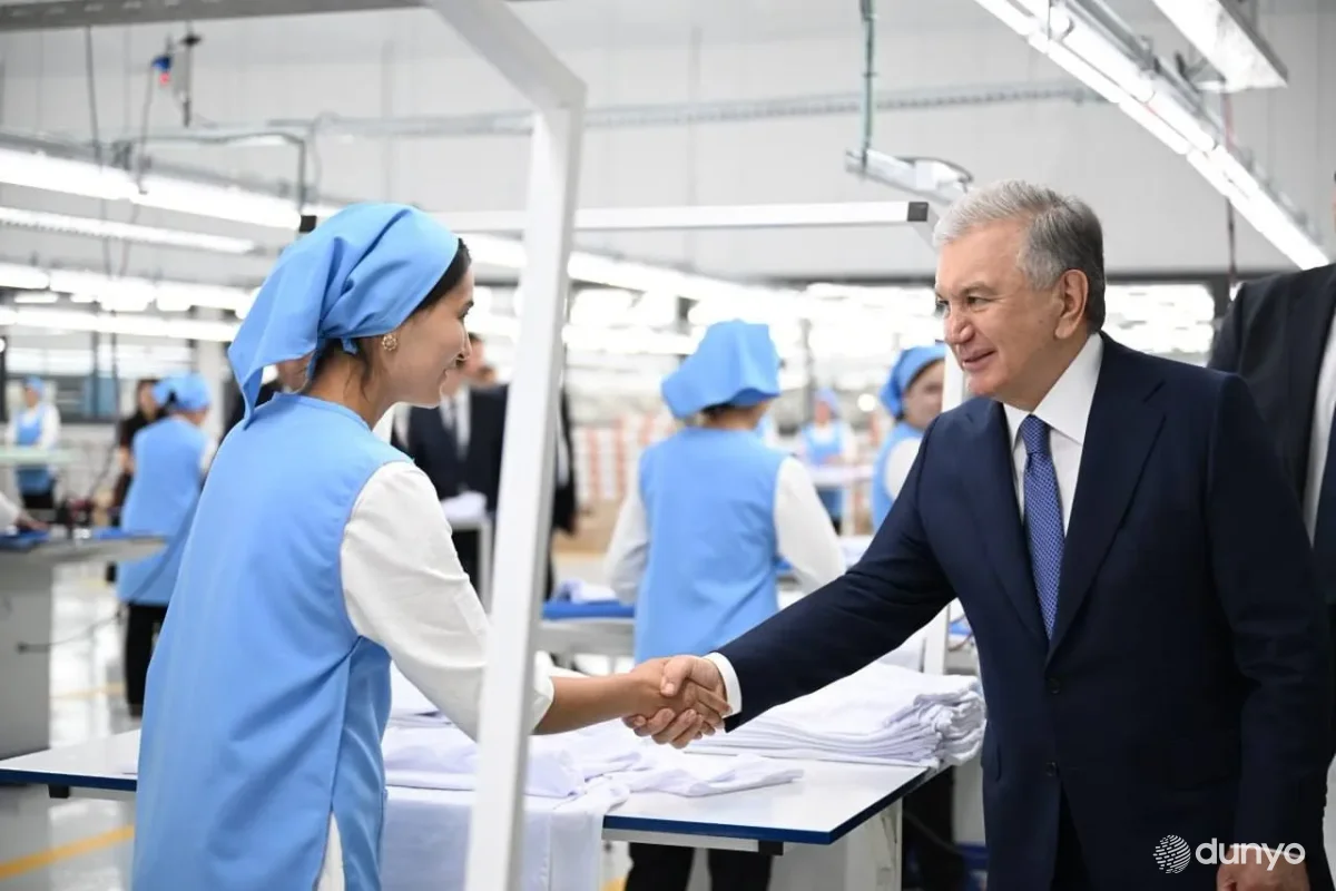 Президент Шавкат Мирзиёев побывал на новых фабриках, ознакомился с производственным процессом и готовой продукцией, пообщался с работающими там женщинами-швеями, интересовался их заработной платой и условиями труда.