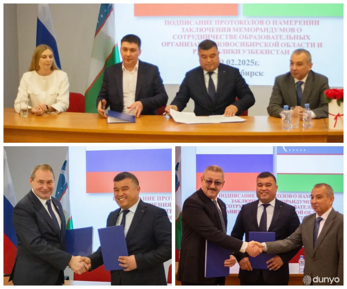 По итогам визита Сурхандарьинским техникумом технологии транспорта и строительства были подписаны Меморандумы о сотрудничестве и Протоколы о намерениях с новосибирскими колледжами легкой промышленности и сервиса, питания и сервиса, автосервиса и дорожного хозяйства, электроники и вычислительной техники.
