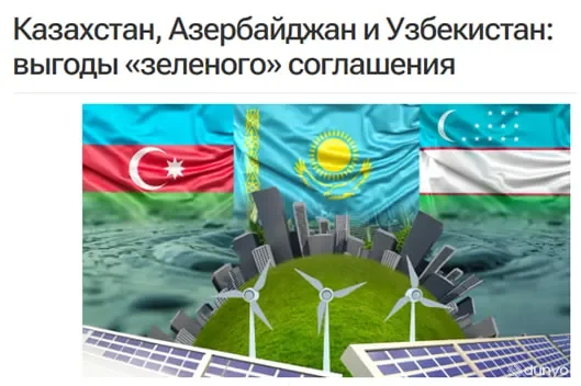 АСТАНА, 19 ноября. /ИА «Дунё»/. Ведущее казахстанское информационное агентство «Казинформ» опубликовало статью, посвящённую сотрудничеству в области «зелёной» энергетики между Казахстаном, Азербайджаном и Узбекистаном, передает корреспондент ИА «Дунё».