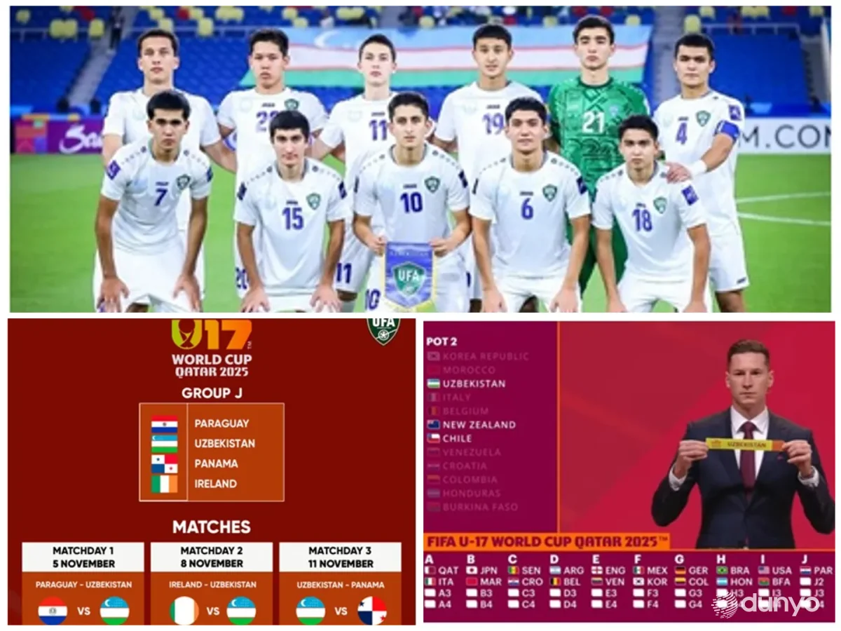 Как сообщает Футбольная ассоциация Узбекистана, по итогам жеребьёвки сборная Узбекистана (U-17) попала в группу «J», где её соперниками на групповом этапе станут сборные Парагвая, Панамы и Ирландии.