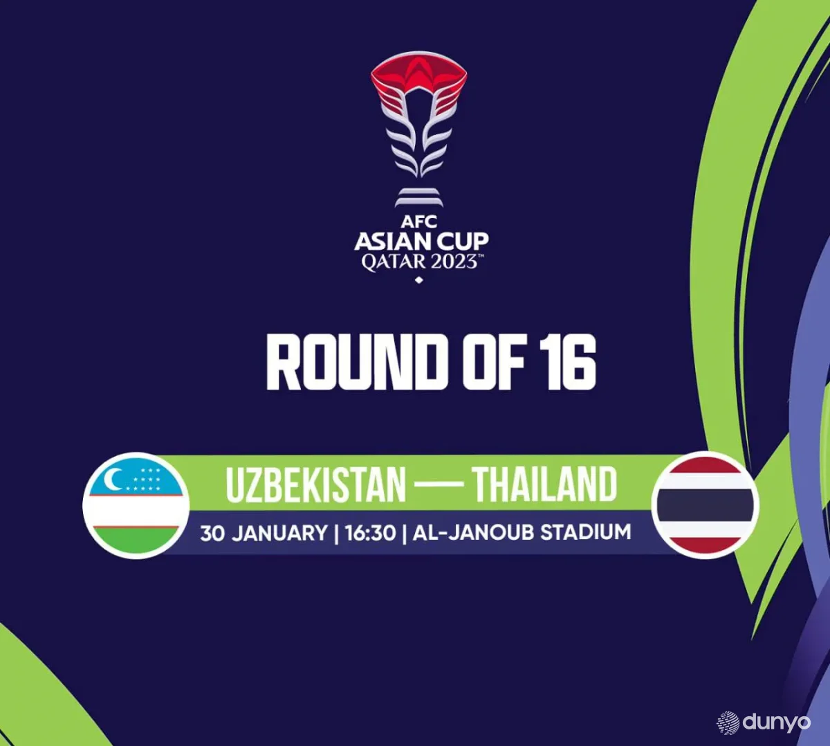 ТАШКЕНТ, 30 января. /ИА "Дунё"/. Сегодня сборная Узбекистана по футболу в 16:30 по ташкентскому времени на стадионе «Ал Джануб» встретится с командой Таиланда в рамках 1/8 финала Кубка Азии в Катаре, сообщает корреспондент ИА «Дунё».