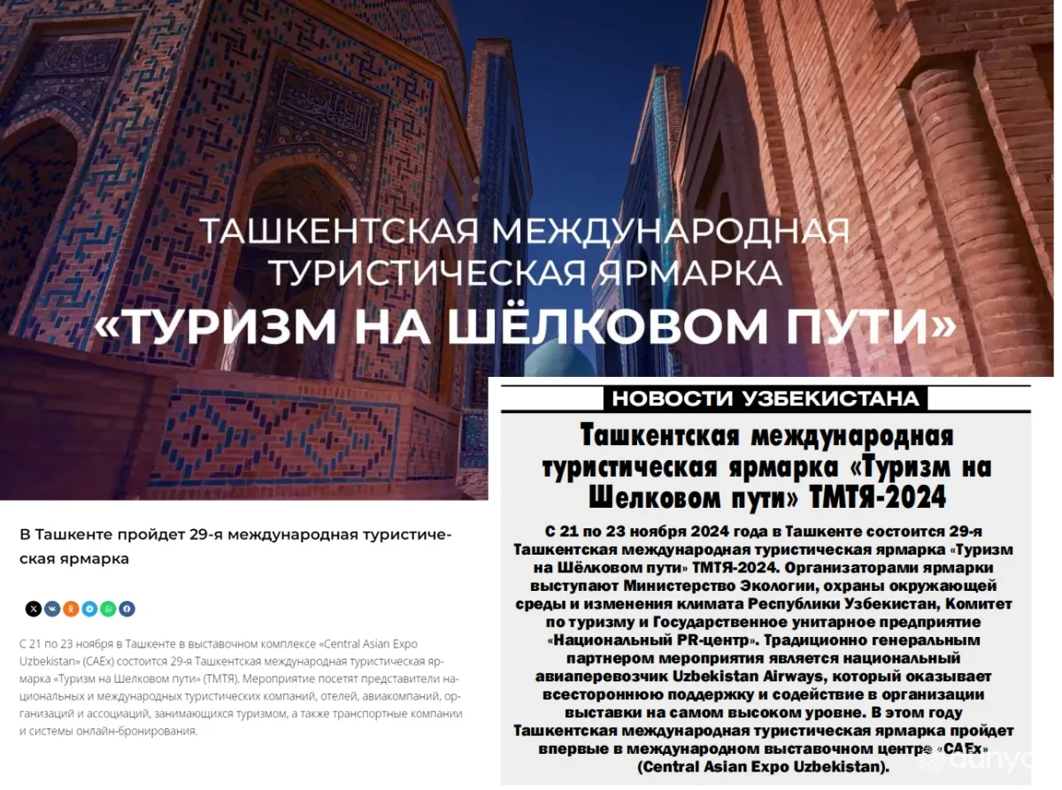 Предстоящая Ташкентская международная туристическая ярмарка «Туризм на Шелковом пути» в фокусе внимания СМИ России