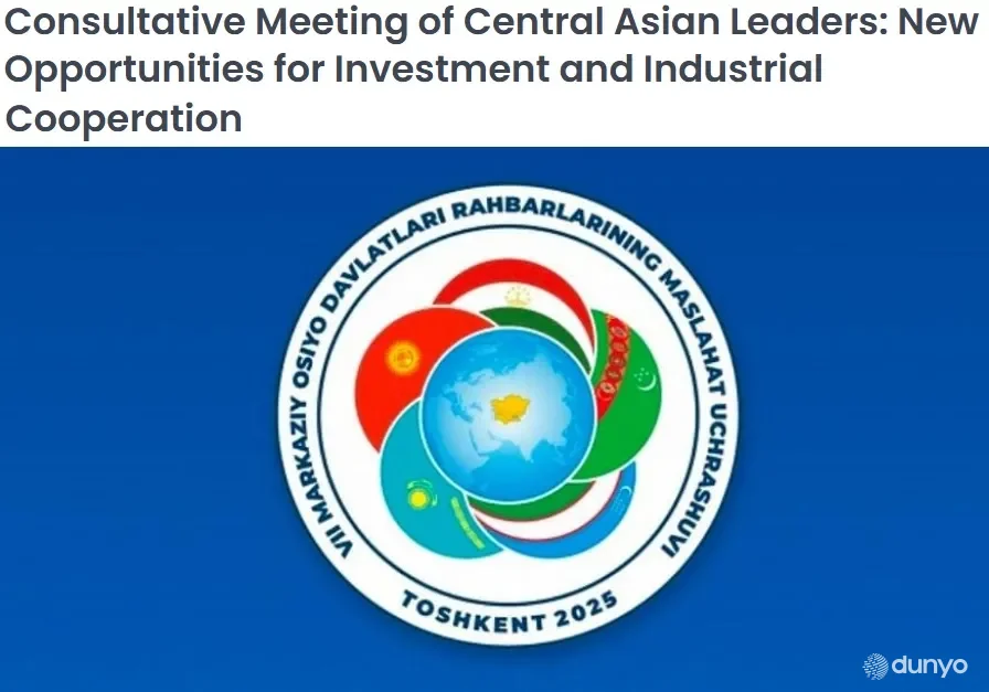 Markaziy Osiyo rahbarlarining Maslahat uchrashuvi doirasida bu tendensiyalar alohida ahamiyat kasb etadi. Asosiy e'tibor – barqaror o'sishni ta'minlash, "yashil" loyihalarni amalga oshirish va mintaqaning texnologik modernizatsiyasini rivojlantirishga qaratilgan. Sanoat va investitsiya sohasidagi hamkorlik mintaqaning mustaqilligi va raqobatbardoshligini mustahkamlashning muhim vositasiga aylanmoqda.