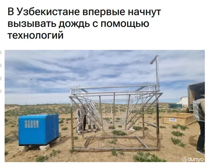 OSTONA, 27-aprel. /"Dunyo" AA/. Qozog'istonning "Kazinform" xalqaro axborot agentligi "O'zbekistonda yomg'ir sun'iy texnologiyadan foydalangan holda yog'diriladi" sarlavhali maqola e'lon qilindi, deb xabar bermoqda "Dunyo" AA muxbiri.